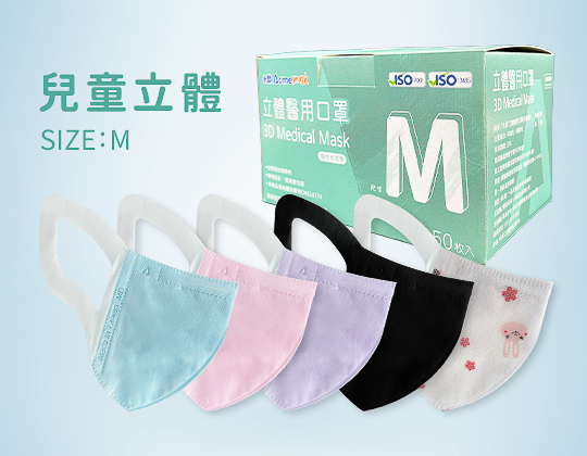 立體口罩:幼幼指的是 1-4 歲,兒童 S 指的是 4-8 歲、兒童 M 是 8-12 歲。
