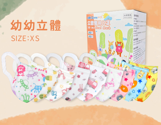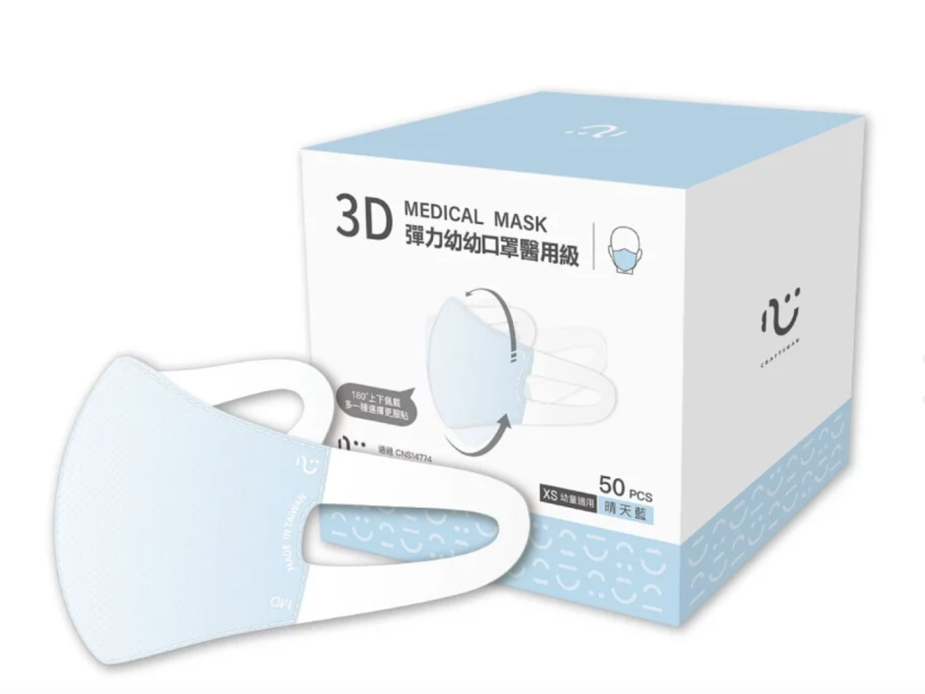 幼幼與兒童之 3D 立體口罩皆為一體成形式,官網無販售,僅於經銷商販售。